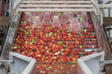 Once Lycored’s proprietary breed of red tomatoes are harvested, washed and sorted, the skins are removed and the tomatoes are crushed, pulped, dearated, heated and cooled.